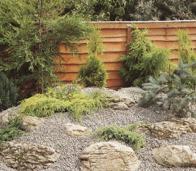 Особую красочность и естественность придают каменистым садам водоемы (микроозерцо, каскад, ручеек, канавка). Возле водоемов высаживается соответствующая прибрежная растительность с таким расчетом, чтобы она обрамляла водное зеркало, но ни в коем случае не закрывала его. Очень выигрышным является размещение водотока с какой-либо одной стороны, чтобы он не привлекал все внимание только к себе (каскад, ручей). При таком размещении водотока прибрежная растительность будет естественно обрамлять его и натурально вписываться в пояса формируемых горных ландшафтов. Живописность вертикалей намного возрастет. Сравнительно небольшие промежутки между скалами и крупными валунами лучше всего превращать в лужайки путем культивирования в этих местах таких красивоцветущих растений, как тимьян, очиток, церастиум, ползучие гвоздики, дернистый флокс, которые к тому же способны сформировать довольно рыхлую и сочную дернину.